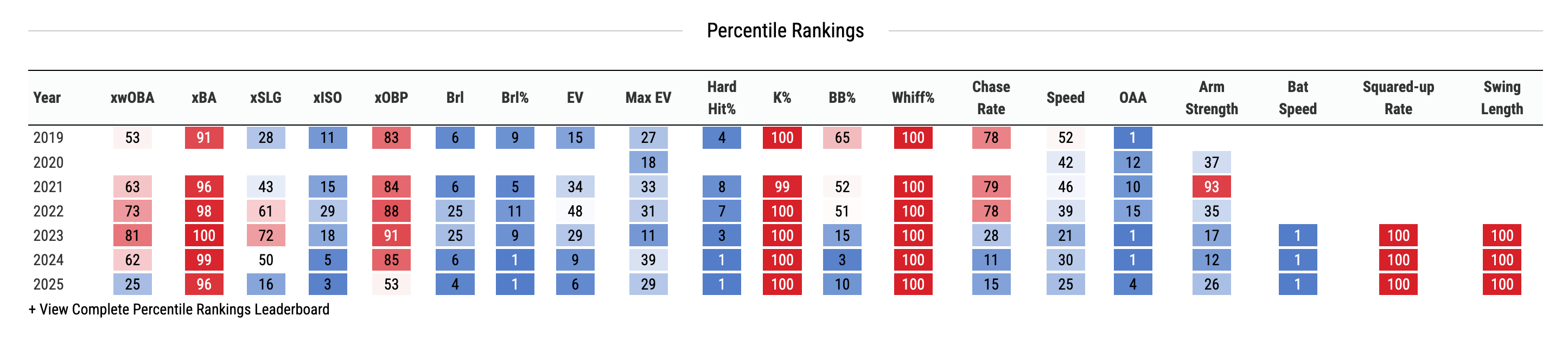 Take a look at Arráez’s percentile rankings on Baseball Savant and see for yourself that we’re looking at a player of absolute extremes: